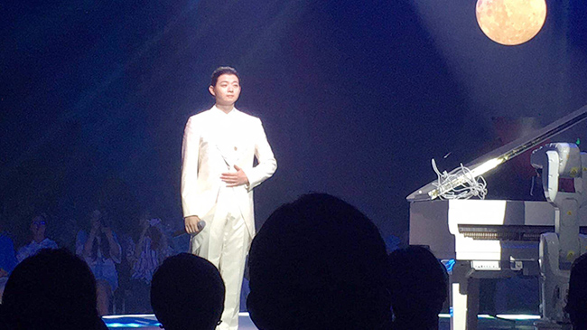 閉幕晚會上,著名鋼琴家宋思衡攜手機器人,與“國風美少年”霍尊共同登臺,上演了機器人與鋼琴家、古風歌手的“人機大戰”, 讓現場所有觀眾感受到科技與藝術的完美融合。